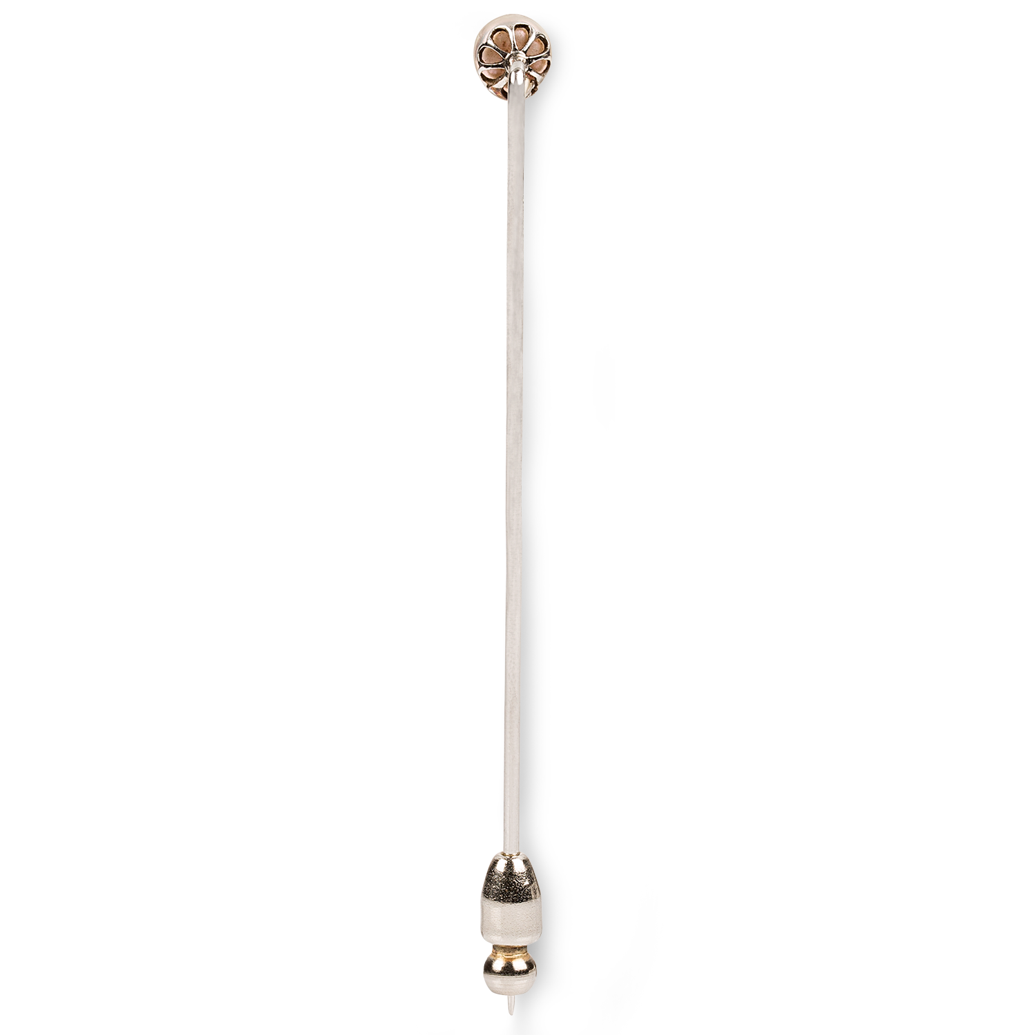 In (950) platinum, very exceptional, valuable stick pin set with a rare, beautiful, natural orient pearl, pink, bouton-shaped, measuring circa 5.4 - 5.7 mm, handmade