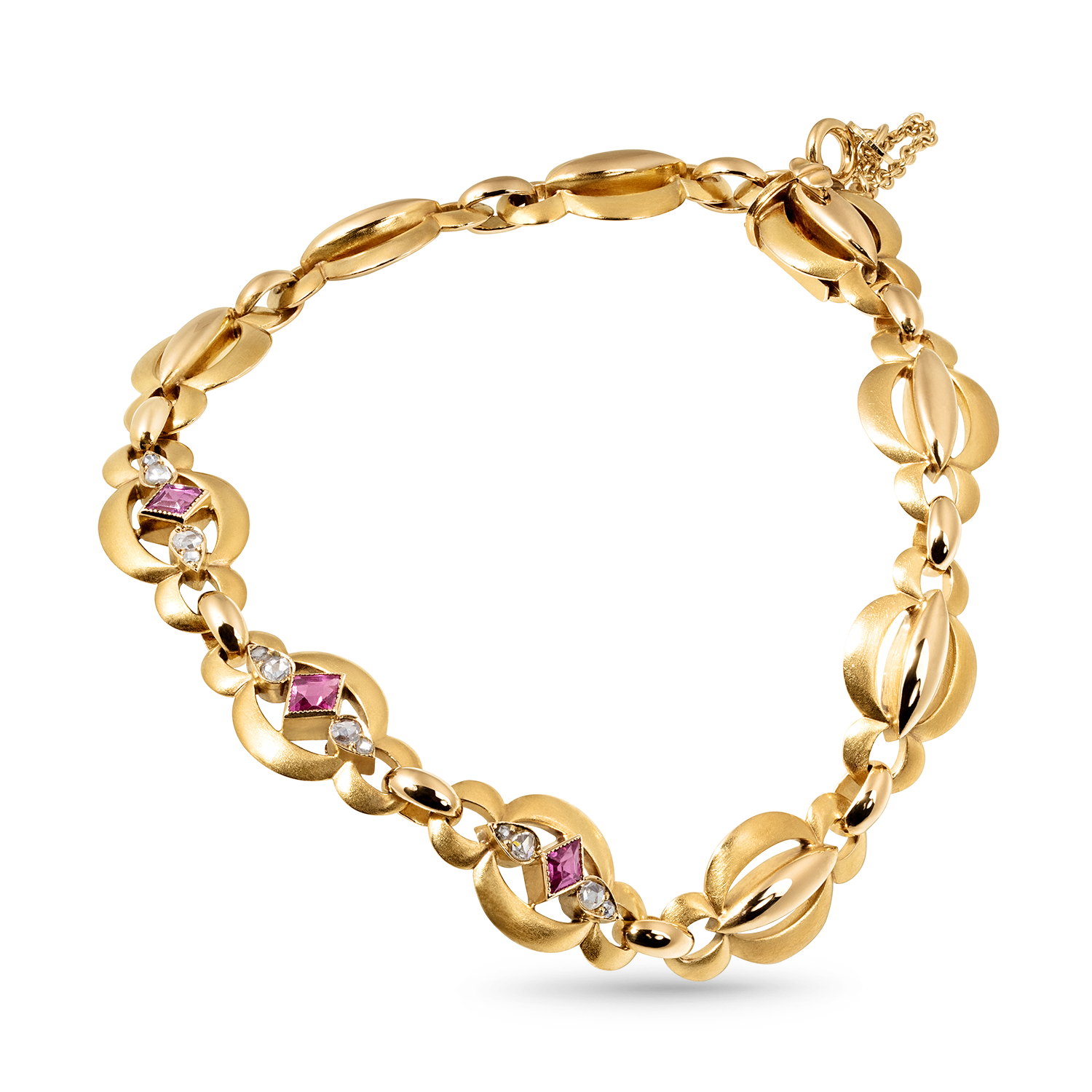 At the turn of the century, fashion appears carefree and luxurious. The jewels of this era are correspondingly lavish and set with many diamonds and pearls, but still feature delicate design. When observed today, these pieces of jewellery with their motifs of flowers, bows and ribbons still evoke the light-hearted joy of life of that period. There is an exceptionally varied range of filigree neck jewellery as well as of jewels that can be worn in various ways (e.g. brooches that can also be worn as pendants).