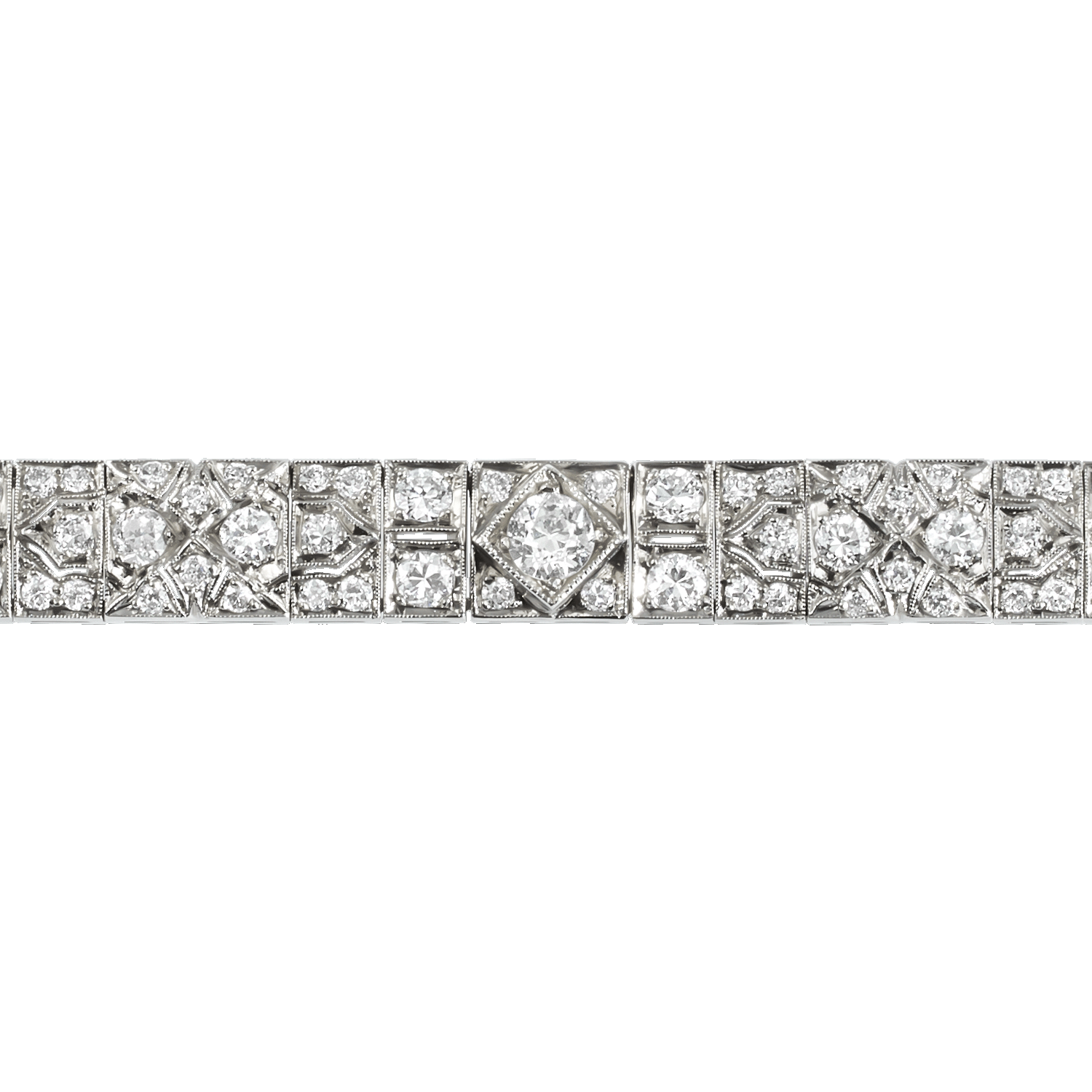 Fine diamond bracelet set with 5 old-cut diamonds in carre setting, movable links set with old-cut diamonds, circa si/J-K, weighing a total of circa 8 carats, fine jewel craftsmanship, handmade