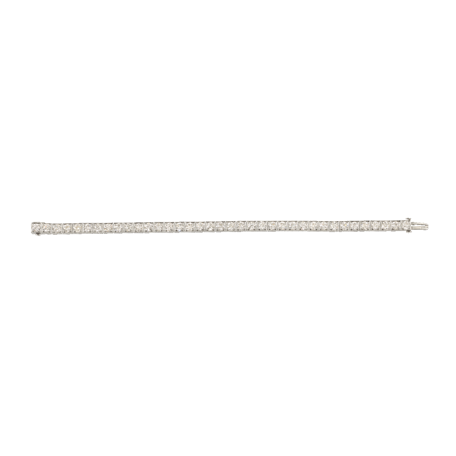 In platinum (approx. 950), set with 37 very fine, old round-cut diamonds, mostly wesselton (-top wesselton) colour and vs (-si) clarity, approximately 4 mm diameter each, total diamond weight approximately 12 carats, grain-set, features a delicate movement mechanism, with fine hand engraving on the sides, box clasp with safety latch, exceptionally fine craftsmanship