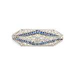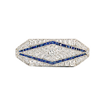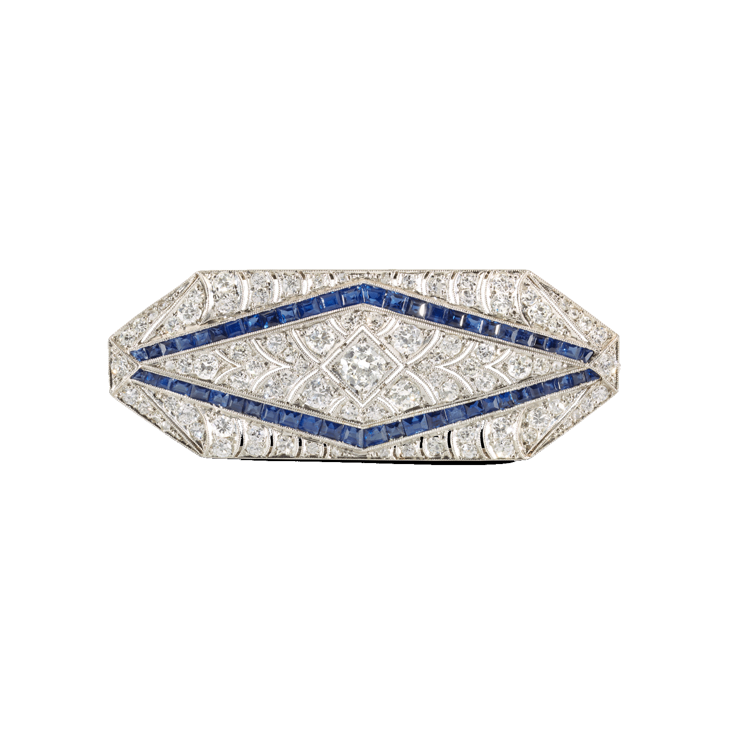 In Platin, besetzt mit schönen Altschliff Diamanten, total 2.25 ct., im Zentrum 1 Brillant ca. 0.65 ct., wesselton, vs, zwei Linien bestehend aus total 53 Saphir-Carrés, feine Farbe, total ca. 3 ct., sehr schöne Handarbeit