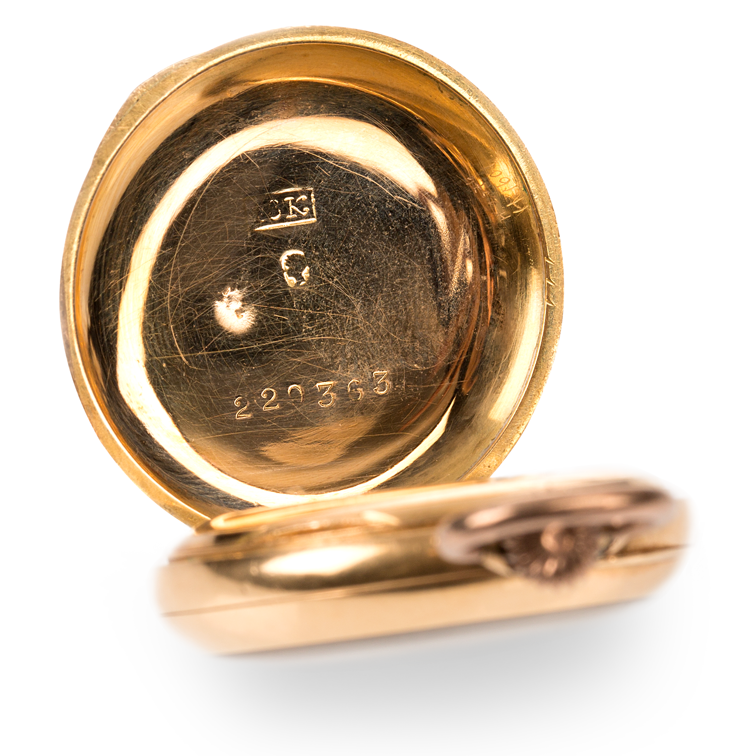 Signiert mit Handgravur Bert Leocle, gepunzt im Gehäuse 18K und Nr. 229363, Frauenkopfstempel