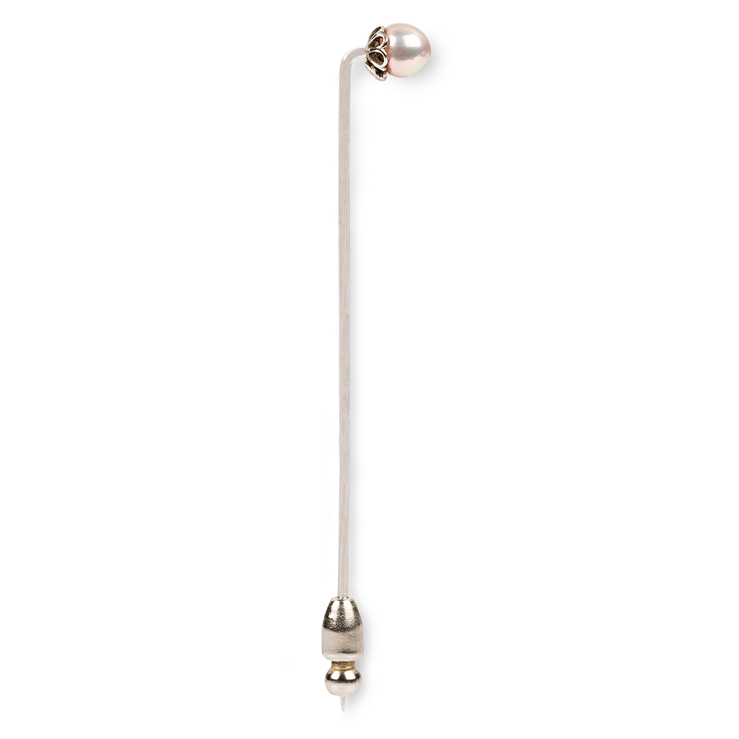 In (950) platinum, very exceptional, valuable stick pin set with a rare, beautiful, natural orient pearl, pink, bouton-shaped, measuring circa 5.4 - 5.7 mm, handmade