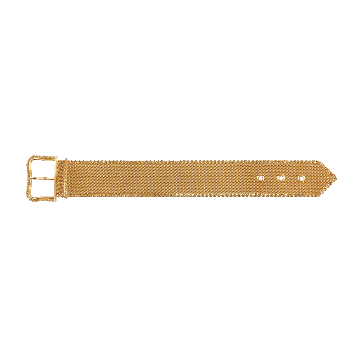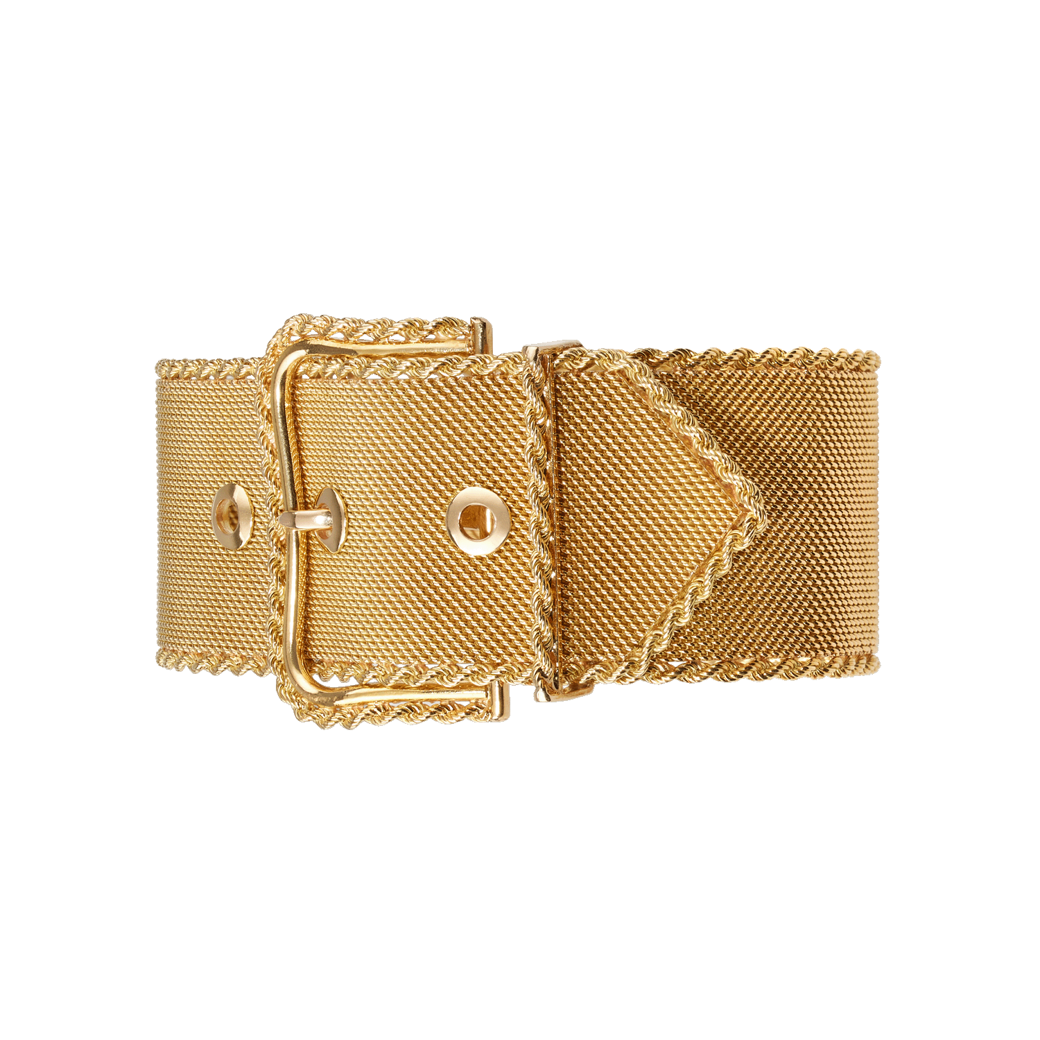 Striking bracelet with buckle design in 18K (750) yellow gold, pin buckle and borders with twine embellishment, fine craftsmanship