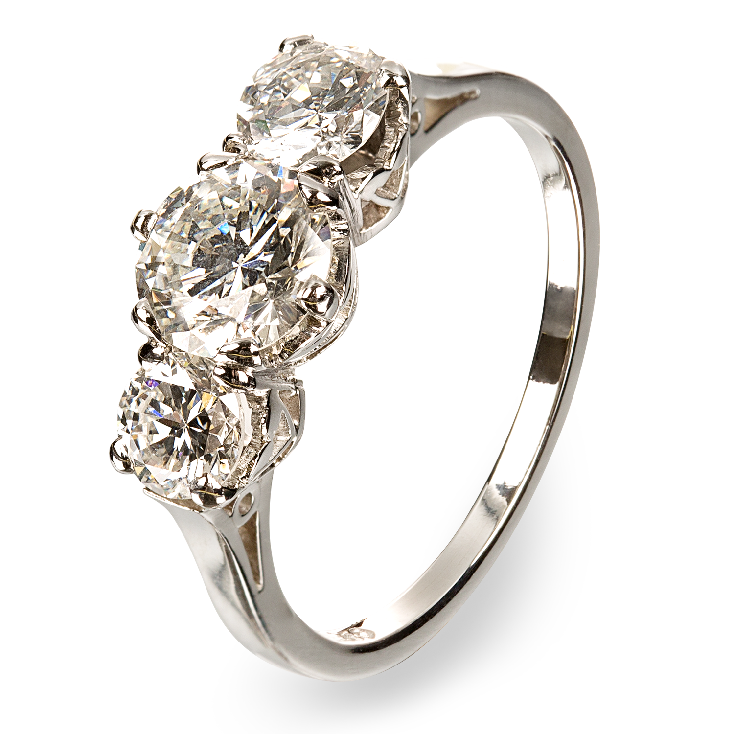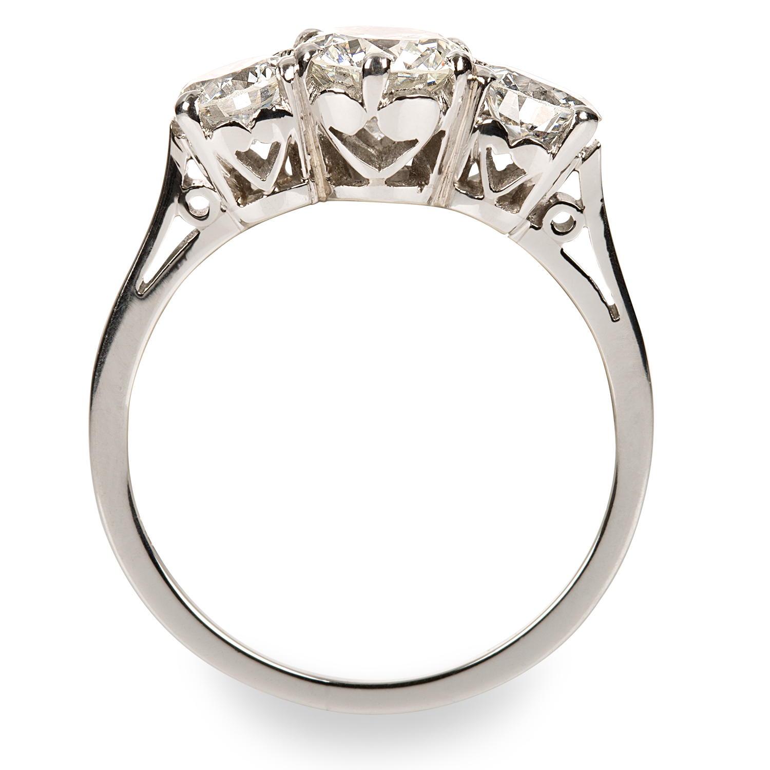 In 950 platinum, classic diamond ring, Bucherer, rivière model set with 1 diamond, weighing circa 0.80 carats, and 2 diamonds, each weighing circa 0.20 carats, H-I/vvs-vs, total diamond carat weight 1.2. Heart-shaped settings, very fine craftmanship
