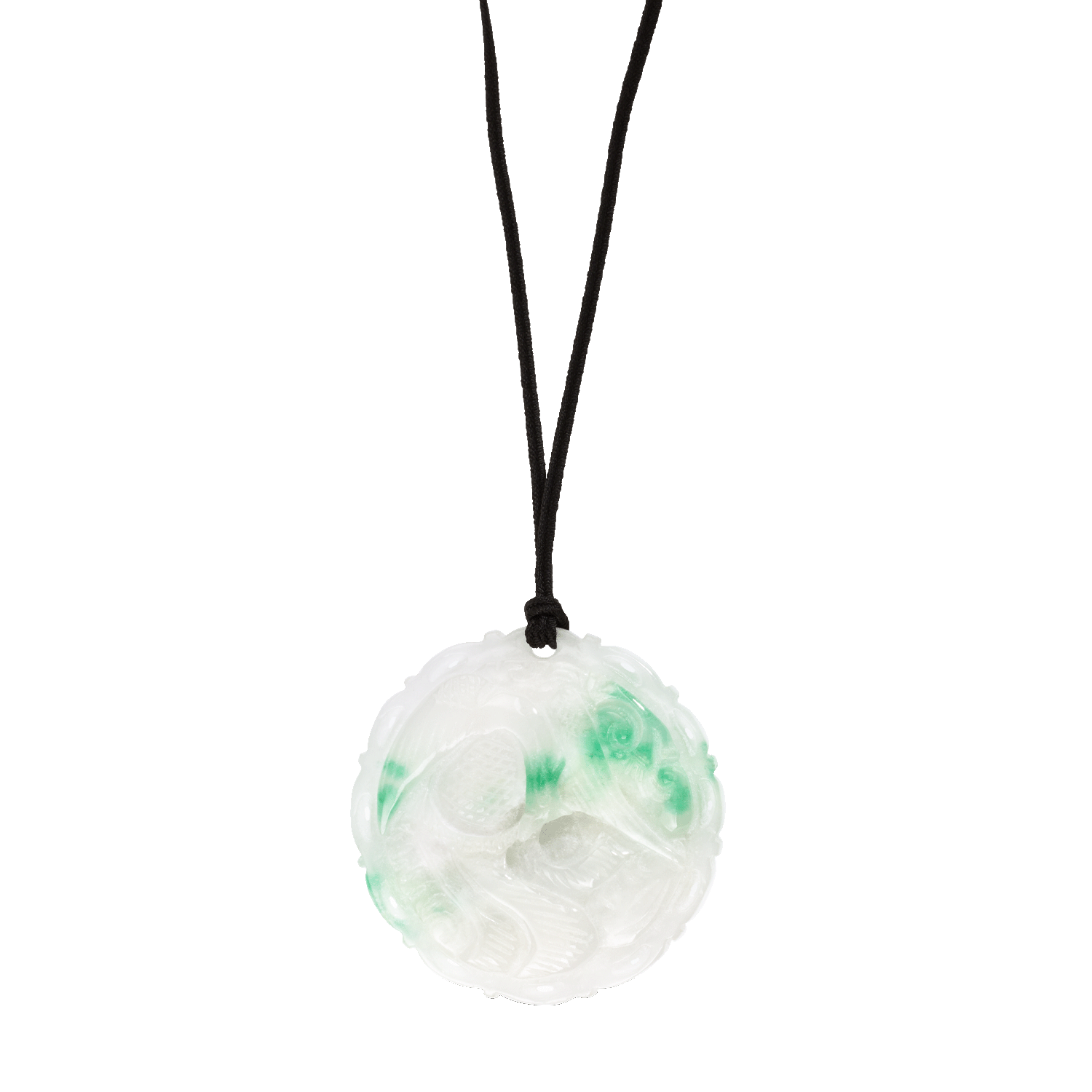 Round, beautifully engraved jadeite disc weighing 306.6 carats, untreated, green to colourless, fine craftsmanship