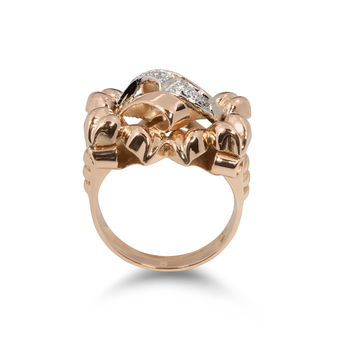 This period begins during the Second World War and the shortage of materials at that time is reflected not only in the way the jewellery is made, but also in the fact that there is very little jewellery from this era. Expressive geometric, asymmetric and daring designs characterize the retro pieces. Here one will find, for instance, eccentric bracelets and impressive cocktail rings in gold. Diamonds and other small, rare gemstones are rarely found due to their scarcity. Instead, larger semi-precious coloured stones such as citrines are used, in line with the motto that best describes the jewellery from this era: “the bigger the better”.