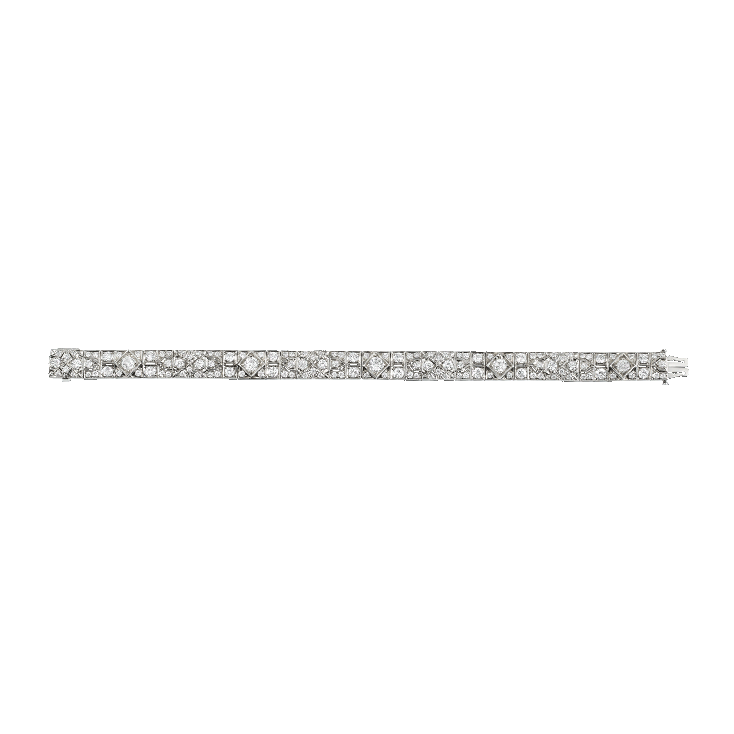Fine diamond bracelet set with 5 old-cut diamonds in carre setting, movable links set with old-cut diamonds, circa si/J-K, weighing a total of circa 8 carats, fine jewel craftsmanship, handmade