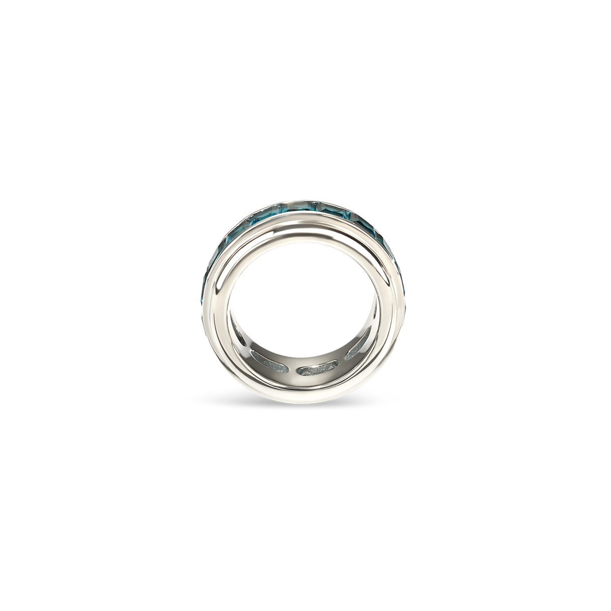 Pneuring in Weissgold 18K (750), besetzt mit 18 ganz raren und feinen Indigolith-Carrés, total ca. 7.2 ct., neuwertiger Zustand