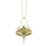 Der Jugendstil wollte auf das Bedürfnis des Menschen nach Schönheit und Geborgenheit in Zeit einer seelenlosen Mechanisierung eingehen. Diese Epoche umfasst eine relativ kurze Zeitspanne, prägte jedoch die Welt des Schmuckes dauerhaft. Zarte Farben und fliessende, organische Formen wie Blüten, Blätter, Insekten und Käfer zeichnen die Jugendstil-Schmuckstücke aus. Auch das Werden und Vergehen (Keimen, Blühen, Verwelken) sowie die Spuk- und Sagenwelt wird festgehalten. So empfindet der Betrachter dieser Schmuckstücke oft eine Wehmut über die Vergänglichkeit nach.